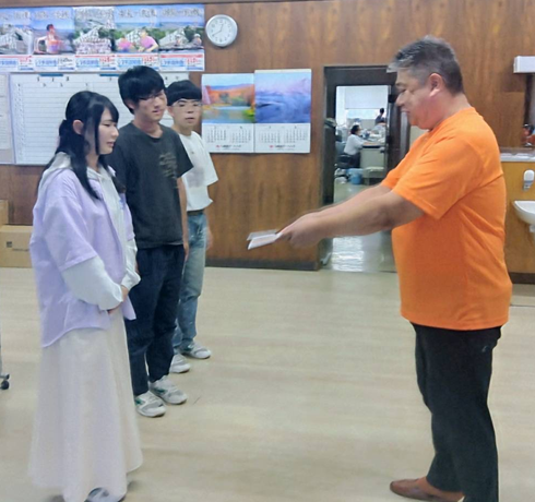 今回のPTA模擬店の収益金は、生徒会に寄附していただくこととなり、9月19日(金)の昼休み、PTA会長が来校され、生徒会の生徒に手渡されました。
