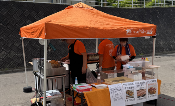 炎天の中、揚げもの・焼きもの中心のメニューに生徒たちの人気も集まり、用意された食べ物は、あっという間に完売しました。