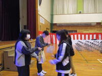 給食調理員3名が離任されることとなり、生徒会長から謝辞、生徒会からお別れの品を贈呈しました。長年、生徒・教職員の栄養源となる給食を作っていただき、感謝しております。また、生徒1人1人を把握して、丁寧にコミュニケーションをとることで、生徒に寄り添っていただきました。本当にありがとうございました。